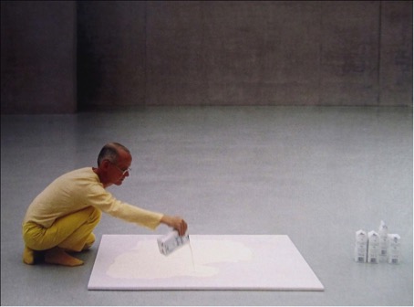 Une autre expérience est proposée par l’Allemand Wolgang Laib dont on connait les cônes fragiles réalisés avec la seule accumulation de pollen. Des montages, nous dit-il, « impossibles à gravir ». Des œuvres que le moindre souffle peut anéantir, mais qui s’imposent avec une rare intensité dans notre esprit comme si, là aussi, échapper au fait matériel constituait l’expérience la plus heureuse qui soit. Il en va de même avec ses « Pierres de lait ». Ce sont des dalles de marbre blanc très légèrement poncées sur lesquelles il dépose du lait jusqu’aux limites du débordement. Chaque jour, il s’agit de laver la pierre et, le lendemain, de déposer à nouveau le lait. La surface tremblante réfléchissant des nuances chromatiques dit l’impossibilité d’en prendre le contrôle. Dit aussi l’éphémère : « Le lait ou le pollen, écrit l’artiste, sont extrêmement beaux. Comme le soleil ou le ciel. Pourquoi être effrayé par la beauté ? » Et d’ajouter à la façon d’une conclusion à notre voyage, « L’art est une forme de cure spirituelle transcendante qui nourrit l’individu. »