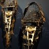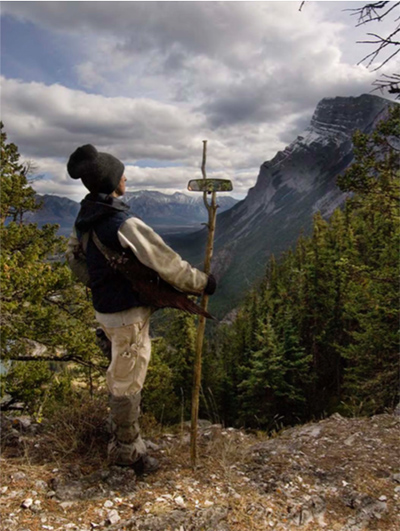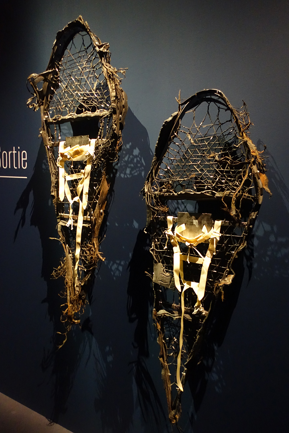 Elinor Whidden. Steel Belted Snowshoes (2007). Les œuvres de l’artiste canadienne plasticienne et performeuse sont décapantes. L’art passe par la marche. Alors que l’automobile laisse une trace indélébile sur le continent américain, elle se propose d’inverser les rapports hommes/voiture. Si cette dernière transporte habituellement l’homme, Elinor Whidden décide de vider la machine de ses attributs et de la transporter à dos d’homme afin de retrouver le sens de la marche dans des paysages naturels. Elle démonte l’auto et en utilise les pièces pour se déplacer à son rythme, en faire des objets utiles pour la mobilité, comme ces raquettes faites de pneu et d’acier. Elle prend la pose des marcheurs romantiques rappelant les peintures de Caspar David Friedrich.