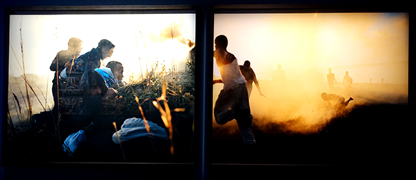 Laura Henno. Sans titre (2011 et 2012). Ses photos qui tiennent de la peinture, du documentaire, du cinéma reconstituent l’errance et la peur de jeunes migrants rejouant le temps d’une photo leur propre aventure. Il y a une contradiction entre les impératifs vitaux de mobilité que les migrants affirment et toutes les pratiques politiques qui visent à contraindre leurs mouvements.