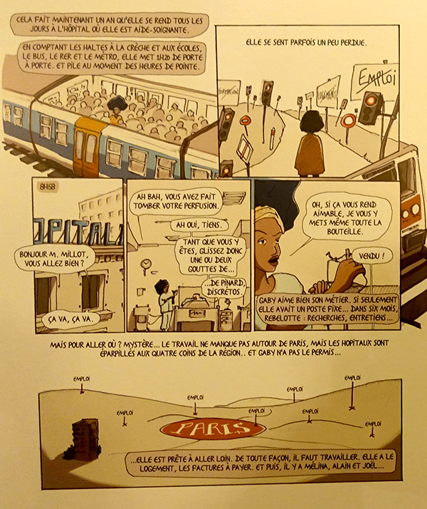Jean Leveugle avec ses BD "Tranches de vies mobiles" raconte les journées chargées et ordinaires de Jean, de Gaby, de Martin ou d’Emilie. Expressif, drôle, coloré. On découvre une évidence : pour être mobile, il faut que quelqu’un dans la famille ou les proches soit immobile ( cf. la garde d’enfants) !