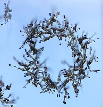 Julie Legrand utilise ses chalumeaux pour mener ses recherches formelles, ici à partir de la forme géométrique élémentaire qu’est le cercle.