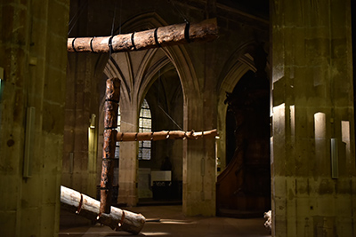 Déroutants et apaisants à la fois sont les troncs suspendus dans Saint-Merry par Daniel Van de Velde.