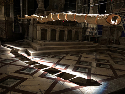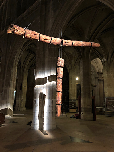 L’arbre est un sujet récurrent dans les expositions de Saint-Merry, qu’on se rappelle en 2010, "Forêts" d’Eva Jospin >>> ou Nicolas Henry >>> ou enfin l’exposition d’été 2013 >>>. Mais pour cette Nuit Blanche 2018, l’arbre dialogue avec l’ensemble de l’architecture et se laisse voir avec un autre regard, celui du poète.