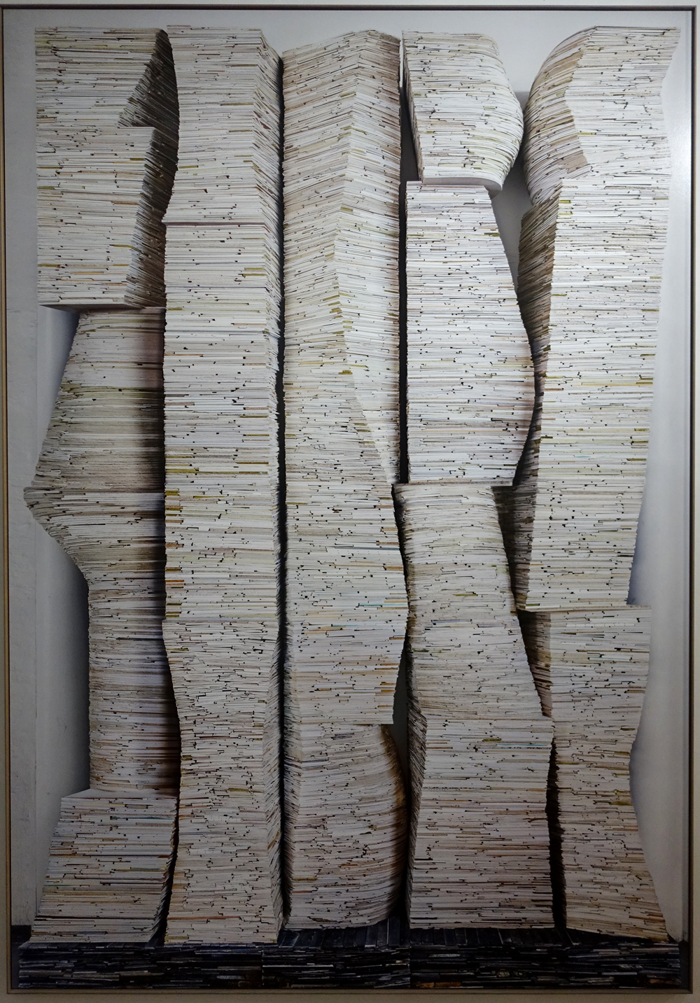 Il y a de l’humanité dans cette manière de considérer la matière, sa pratique tient de la philosophie la plus concrète, car elle reconnaît ce qu’elle touche, mais surtout elle évoque clairement les réalités de la condition humaine : la confrontation à l’ordre et au chaos, l’opposition érection/chute, construction/ destruction. Elle n’édulcore pas la violence des passages, elle va leur donner une qualité visuelle.
