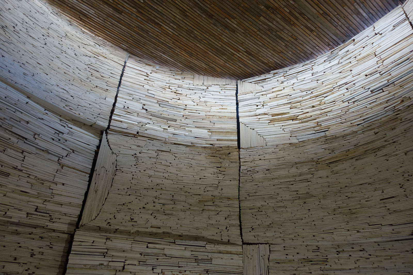 De ces architectures vernaculaires, modestes, elle fait des monuments. Elle n’adopte pas la position du romantique moderne abîmé dans la contemplation de la ruine, ou de l’artiste illusionniste maître de l’anamorphose pour questionner l’image, car elle est artisane de la matière présente.