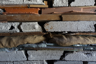 La dimension de la vanité mélancolique, ce temps qui passe sur lequel on n’a pas prise, est balayée par l’espérance d’un possible, ici en transition par l’art. Sa manière d’insister sur la fragilité de toute chose ne passe pas par la symbolique d’un verre cassé, d’une fleur flétrie, mais par ces éléments les plus durs que sont les matériaux de construction.