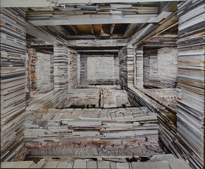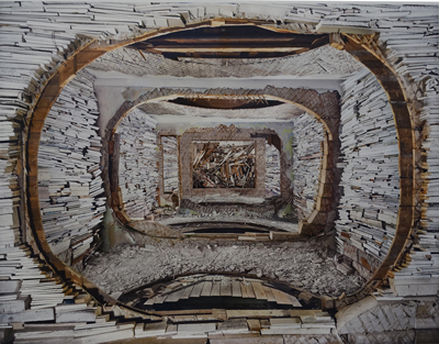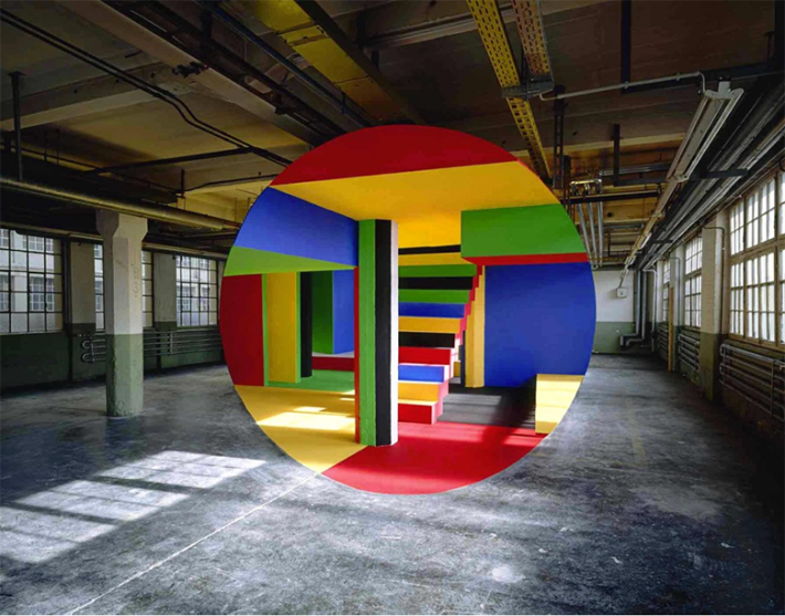 Gordon Matta-Clark, urbaniste et « anarchitecte », avait découpé, en 1975, deux cônes imbriqués dans deux immeubles voués à la démolition devant Beaubourg en construction : le génie civil au service d’un monde en chute. Le photographe Georges Rousse, lui, a travaillé dans les immeubles en ruine en croisant architecture, peinture, photographie par l’anamorphose afin de troubler le regard : une invitation à dissocier le faux du vrai de l’image. La matière permanente de son œuvre est l’Espace, qu’il révèle ; sa réflexion porte sur le temps et la mémoire des bâtiments dégradés, leur course vers l’oubli et la mort. Mais il y a aussi une dimension spirituelle : avant la destruction de l’espace se produisent une transmutation et une transfiguration éphémère .