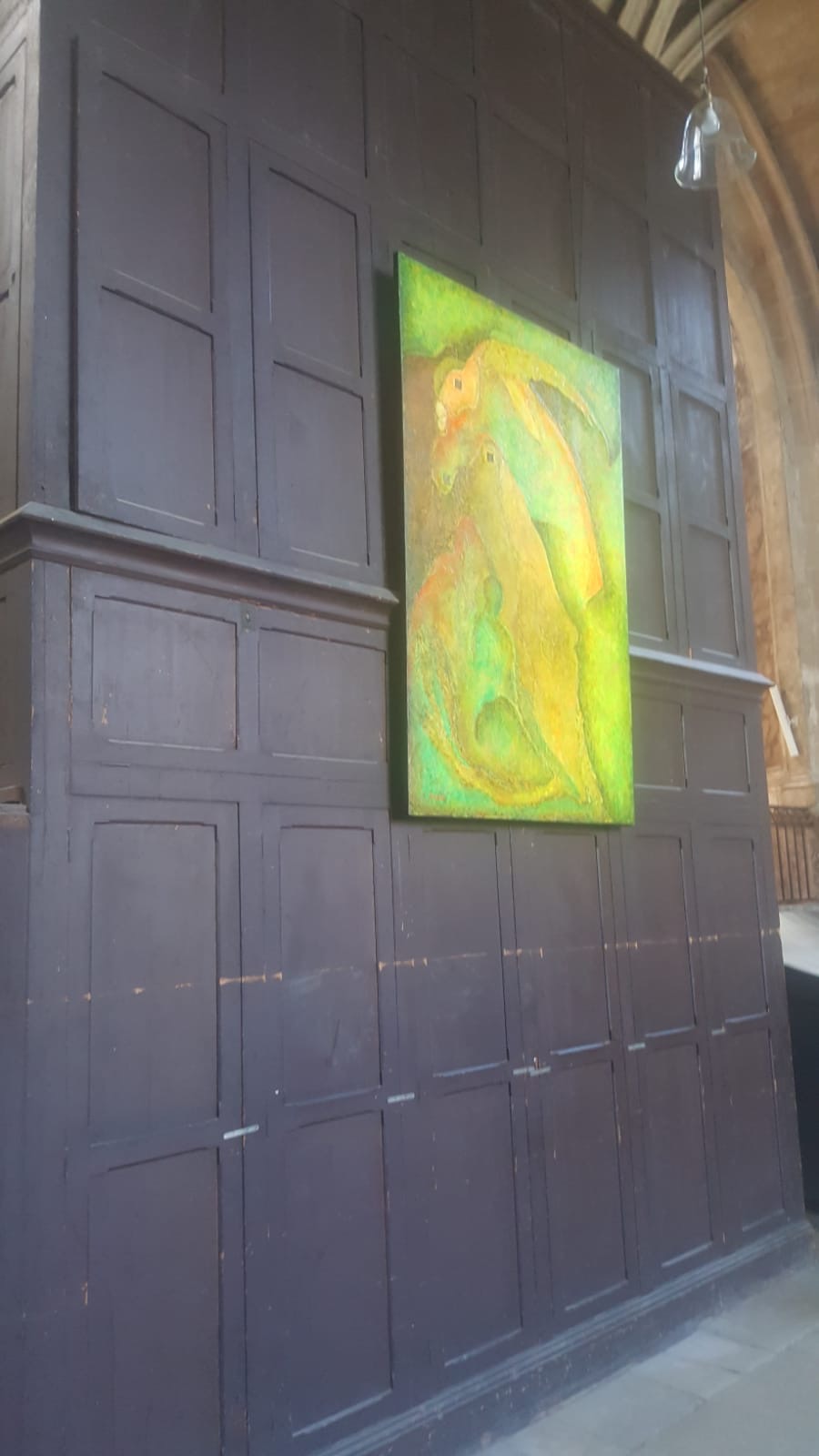 Claudie Titty Dimbeng est une artiste franco-ivoirienne qui a déjà exposé à Saint-Merry ses grandes toiles lumineuses dans le cadre de l’exposition-découverte sur la spiritualité de la peinture ivoirienne (Vohou-Vohou). Lire >>>. Le Passage est une œuvre de 2006 qui met en valeur la culture ivoirienne, prend un nouveau sens dans le cadre de l’exposition d’été 2020 « Après-After ».
