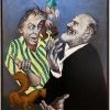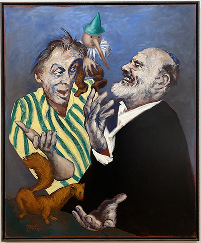 : la situation des personnages, les multiples symboles, les animaux et les lieux, le mélange des époques, la variété des tailles des tableaux, et bien sûr les manières de peindre qui tiennent du classique, du figuratif, de l’abstraction. L’étrangeté est levée par le film qui conclut l’expo : celle-ci est le résultat du débat contradictoire, appelé H’avrouta, mené durant trois ans par le peintre avec son maître et ami, le philosophe Marc-Alain Ouaknin, autour des textes de l’auteur thèque.