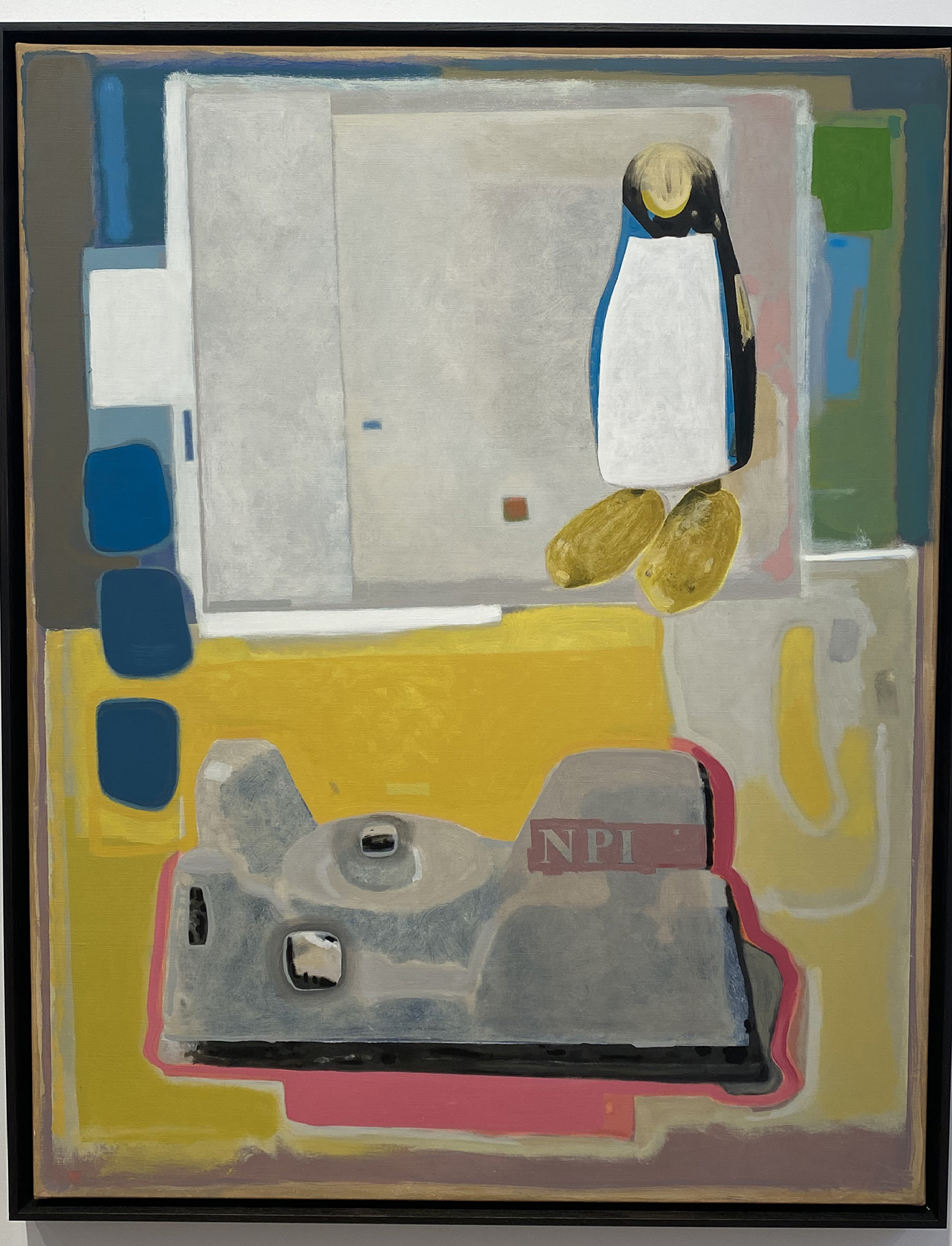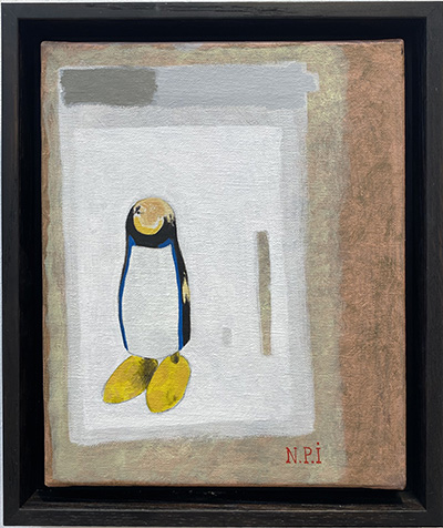 Cette interrogation est latente dans ses représentations les plus diverses où le sujet est une sorte de pingouin, un objet trouvé dans un brocante, qui fonctionne comme le doudou d’un enfant, avec un acronyme d’autodérision, N.P.I., Non Productif/Incontrôlable, pour se qualifier d’anarchiste dans la peinture, alors qu’il vend dans les plus grandes galeries. Mais Andy Wharhol n’avait-il pas de même une vision cynique en fustigeant la société de consommation tout en manipulant les règles du marketing pour mieux vendre ses œuvres ?