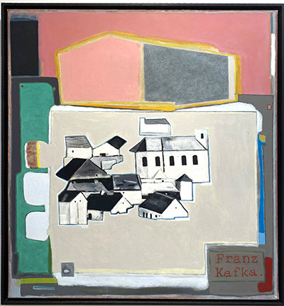 Curieuse programmation : dans l’autre galerie de Templon, Garouste s’empare de la richesse de l’œuvre de Kafka ( lire Voir et Dire >>> ), alors que Jean-Michel Alberola, avec "F.Kafka - Zurau" aborde à sa manière l’écrivain, par son village d’enfance où des photos de ses maisons sont dessinées à plat, comme Matisse faisait ses peintures d’intérieur.