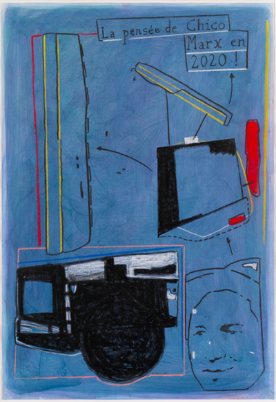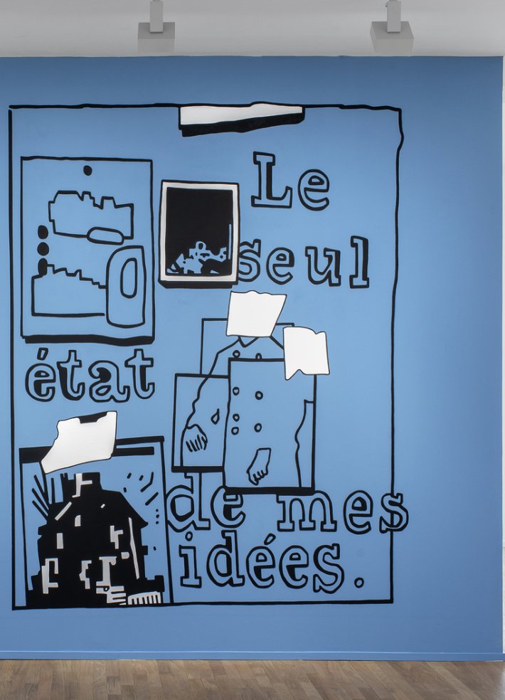 Chez Templon, sont absentes les phrases en néon, qui sont pour lui des dessins de vanité, ou les sculptures et maquettes mystérieuses qui sont des évocations anarchistes et critiques. Il n’est que peinture ou presque.