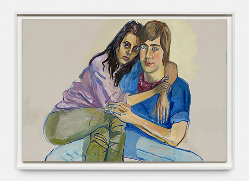 En 1941, Alice Neel, à nouveau enceinte, donne naissance à Hartley, l’enfant béni du photographe. Mais rien ne s’arrange : « En politique comme dans la vie, j’ai toujours aimé les perdants, les outsiders. Cette odeur de succès, je ne l’aimais pas. » D’où la question : que cherche le peintre dans ce face à face très réel avec ses modèles ? À défendre une cause ou à se défendre ? Il y a bien dans l’œuvre quelques scènes de rue, mais l’essentiel est bien dans ces face-à-face qui sont autant de relations en miroir de son être au monde. Si la manière, souvent cernée de noir dans les premières années, se fait picturalement plus légère, plus claire et plus colorée, un élément du visage, les yeux, demeurent la focale essentielle de la figure, et ce dès un premier portrait de bébé daté de 1930. Dans l’exposition bruxelloise, les époques se mêlent en même temps que les personnalités, jeunes ou vieux, enfants ou vieillards, solitaires ou en couple.