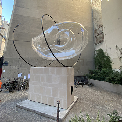 Avec la double structure gonflable en polyuréthane de l’artiste suisse Victorine Müller, le Socle Paris n’est plus destiné à exposer une statue traditionnelle (un héros, un cavalier, voire un dictateur comme « Debout.Le Roi des trous ») en bronze, en pierre ou en matériaux mixtes, mais à soutenir de l’air et de la lumière. La matière du socle ne sert plus à résister au poids d’une sculpture, mais à révéler la légèreté d’une œuvre.