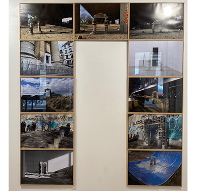 Le jeune artiste, découvert par V&Den 2018, apparaît ainsi bien engagé dans son devenir. Le land art en milieu urbain est un langage heureux et poétique (installation puis prise de photo), où la grammaire est parfois celle des assemblages de fragments d’objets, de pierre dans les in situ des matériaux eux-mêmes. Non-croyant revendiqué il infuse un sens artistique à ses œuvres en utilisant avec subtilité des symboliques religieuses et les questions humaines qu’elles abordent : triptyques, déclinaison du thème du passage et du cheminement, récupération de la pierre délaissée ou encore invention d’une silhouette de cathédrale devant laquelle une chaise vide est une invitation à la méditation.
