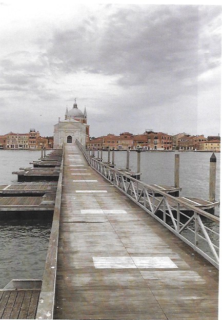 Établir des marquages réguliers en craie sur un pont temporaire à Venise à l’occasion d’une fête votive populaire est autre belle initiative. Avec de simples rectangles dessinés à la craie, il a créé de manière temporaire (donc fragile) le cheminement vers un édifice religieux très connu : l’église du Rédempteur, conçue par Palladio. Un dialogue entre deux époques non signé plein de sensibilité.