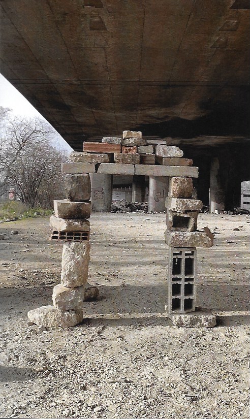Des pierres délaissées de la ville, il fait des monuments fragiles, des portes urbaines improbables. De ses déambulations subsistent de splendides traces poétiques et humbles.