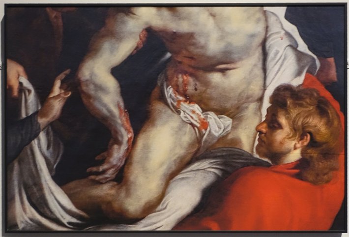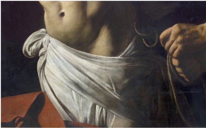 À partir de cette époque plus particulièrement, le périzonium n’est plus le marqueur de la Crucifixion ou de la Descente de croix et se retrouve dans d’autres séquences du supplice. Les variations de Jacqueline Salmon sur la flagellation ou le Christ moqué, chez des peintres du XVIIe, sont truffées de détails sur les gestes de violence.