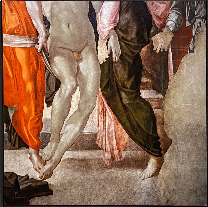 Michel Ange est certainement celui qui a le plus poussé les réflexions théologiques de la Renaissance sur la nature humaine du Christ en proposant un Christ sans périzonium. D’autres œuvres analogues ont subi les effets de la censure.