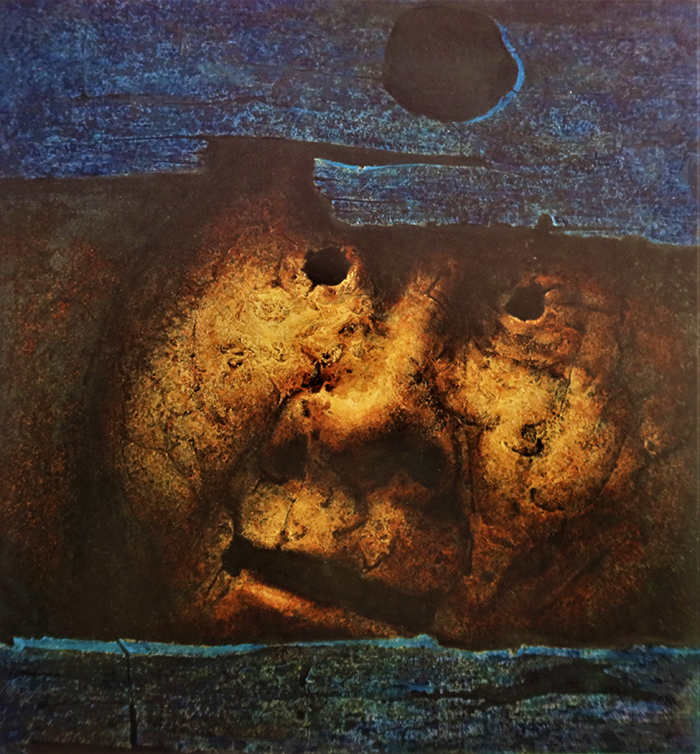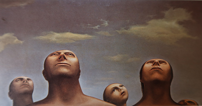 Mais bientôt, le souvenir des silences, des attentes et des menaces liées au bruit des armes vont amener des œuvres habitées par le silence et le temps suspendu traités dans une technique lisse en glacis. Pour certains, il s’agissait d’une forme de réalisme magique. Il est loin pourtant de la rêverie. En déformant les visages qui deviennent lunaires et fixent le ciel ou le lointain, le peintre vise autre chose que le réalisme narratif, une authenticité comme dans l’œuvre de Permeke qui, dès 1958, l’amène à approcher son oeil de l’épiderme des corps. Ce rapprochement le conduit vers les textures de la peau de têtards, de grenouilles ou encore de tortues (une oeuvre aujourd’hui au MOMA). Dans les mois qui suivent, Il approche encore l’objectif, rejoignant les recherches de la photographie macro.