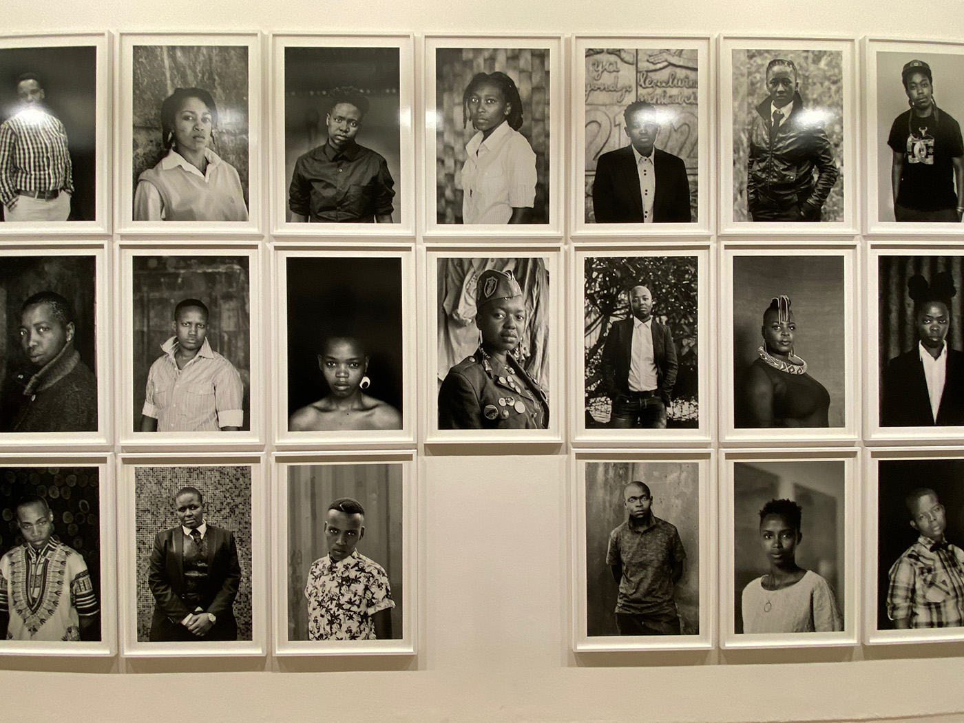 « Faces and Phases » (Visages et phases) est un projet ouvert depuis 2006 et comptant 500 images aujourd’hui, qui donne à voir les portraits de personnes LGBTQIA+, avec le même esprit de rigueur qu’un Gustav Anders qui avait voulu représenter toute l’Allemagne à partir des années 30 : pas d’artifice, visage haut, regard droit, même distance par rapport à l’appareil photo. Moholi revient régulièrement photographier les mêmes individus et a rassemblé en un espace particulier les personnes décédées, en laissant un vide dans la collection accrochée. « Nous exprimons notre identité sexuée, radicalisée et de classe de manière riche et diverse » écrit-elle sur un cartel.