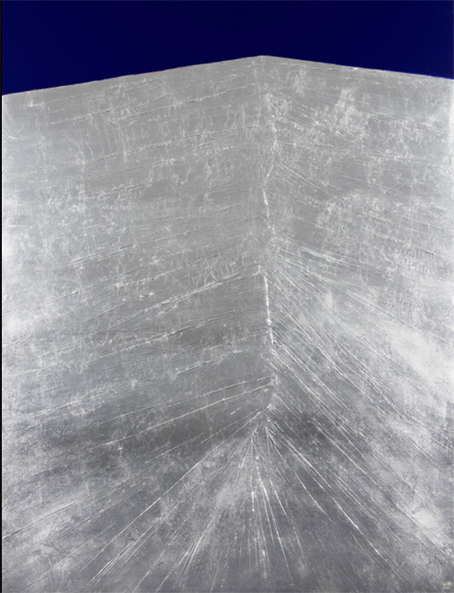Si elle utilise la peinture a tempera, elle inclut des feuilles métalliques qui créent des effets de lumière, de mouvements : elle tente de traduire ainsi son émotion face à la nature qu’elle cherche à saisir, d’abord sous une forme brute, puis de plus en plus épurée, ou abstraite. Cela passe par des formes élémentaires : ovales, triangles, traits partageant la même direction.