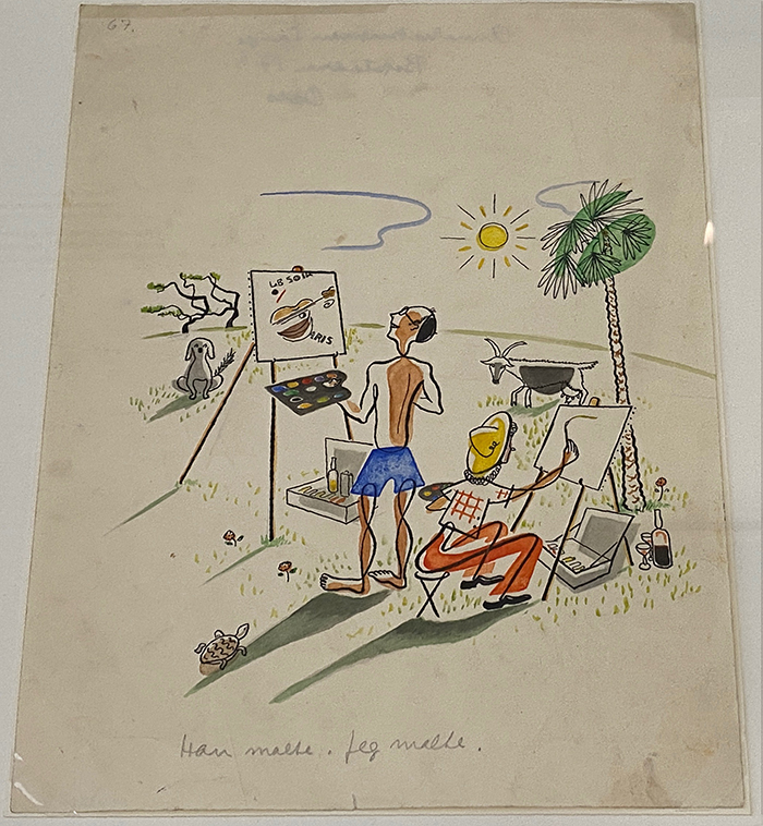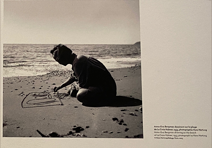 Cette artiste (1909-1987) est née proche de la nature, en Norvège, y a grandi, s’y est formée avant d’aller à Vienne puis à Paris où elle rencontre Hans Hartung (1904-1989), jeune peintre allemand abstrait, alors inconnu, qu’elle épouse en 1929. Au temps de cette jeunesse européenne, elle développe un univers visuel déjà talentueux, vivant, drôle, passant par la caricature, par la figuration et l’abstraction. La rétrospective chronologique du Musée d’Art Moderne rend bien compte de cette première partie de sa vie.