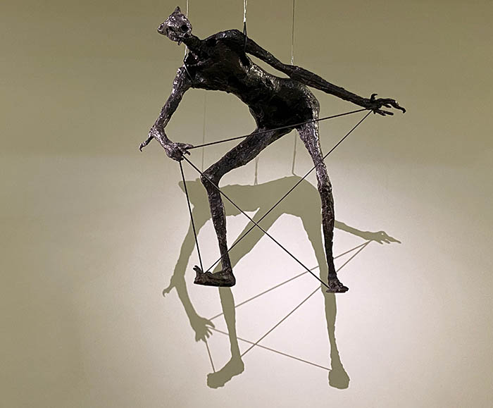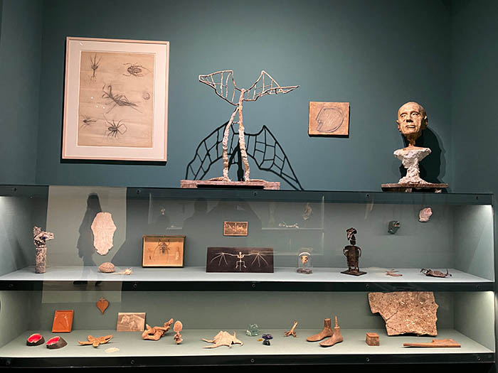 C’est ainsi que la filasse qui est ensuite coulée en bronze, et des fils différemment d’autres artistes comme Henry Moore, lui permettent d’appréhender l’espace et les rapports au socle d’une tout autre manière. l’Araignée (1946) ou la Mante (1946)