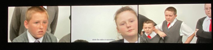 Dans cette œuvre (5min 7s), nous sommes les témoins des réflexions d’écolières et écoliers participant à un atelier à la TATE Liverpool, amenés à décrire et à interpréter La Femme qui pleure de Picasso (1937). L’œuvre se trouve dans le hors champ de la caméra. Trois questions sont posées, mais le spectateur les ignore. Elles portent sur les raisons des larmes du modèle et l’image dévoile l’appréhension de la tristesse par les enfants. Seules les réponses et les descriptions des enfants nous permettent de reconstituer le tableau, au fur et à mesure(voir vidéo entretien ci-dessous). Les réponses sont autant d’indices sur leur personnalité et leur imaginaire.