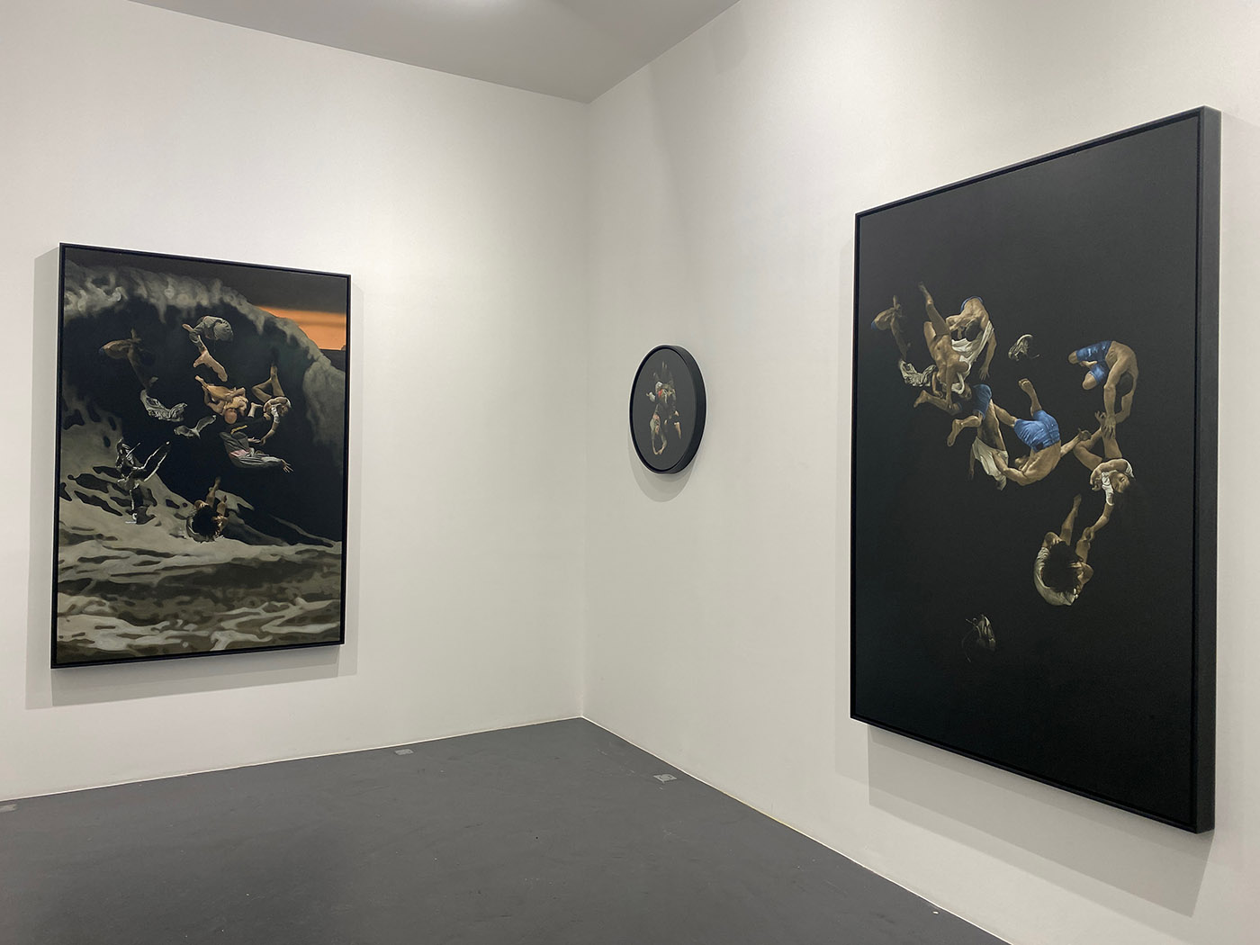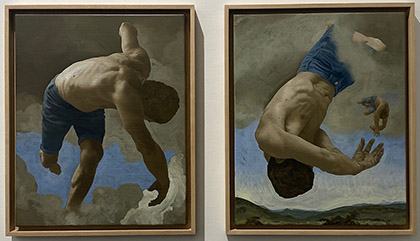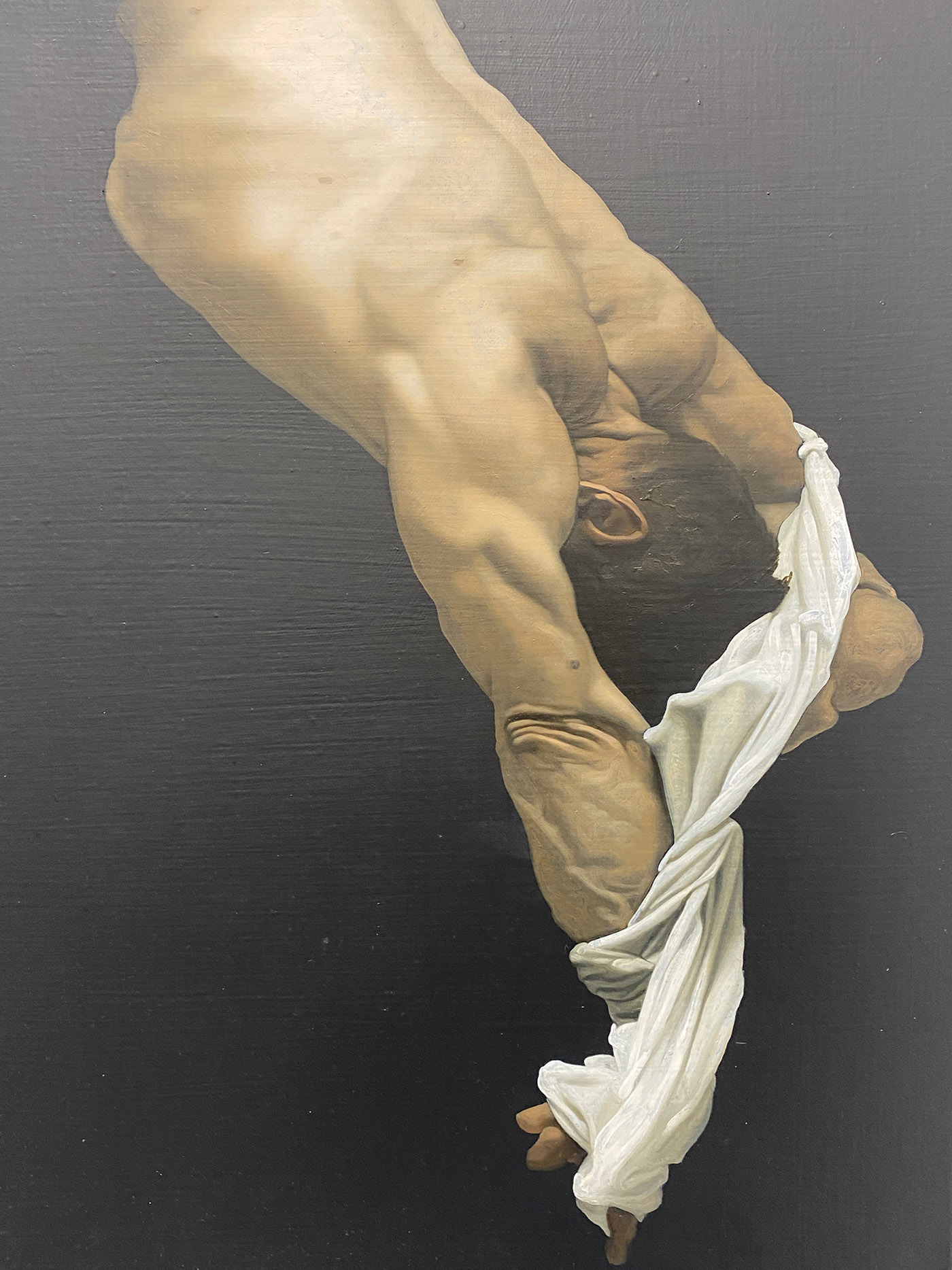 Une peinture contemporaine figurative et puissante qui a recours à la technique photographique et au langage des corps. Une plasticité puisant dans le cinéma pour dire autrement la fin des temps.