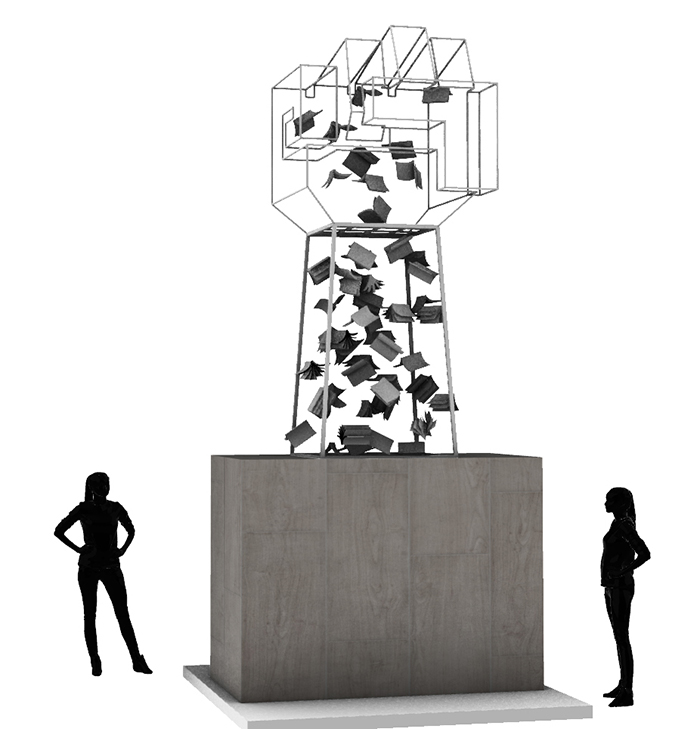 Ce poing levé, dont les veines portent des livres, participe des enjeux contemporains.