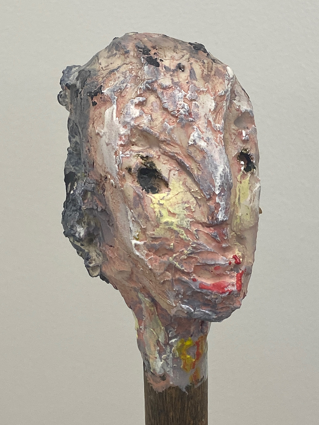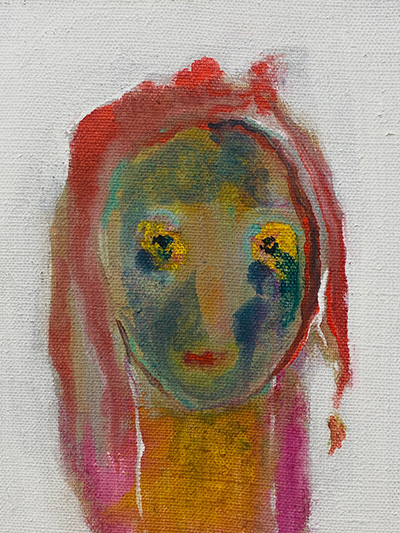 La sculpture a été un point de bascule dans sa peinture des années 2000. De la matière picturale ont alors surgi des visages, non pas ceux qui était proches de l’artiste, mais des modèles ou des images venues d’ailleurs. La série de ses petits portraits n’a même plus besoin de fonds débridés pour exister. La rudesse de la toile de lin, non apprêtée, suffit. La gestuelle de l’abstraction glisse sur la joue, les cheveux, les yeux.