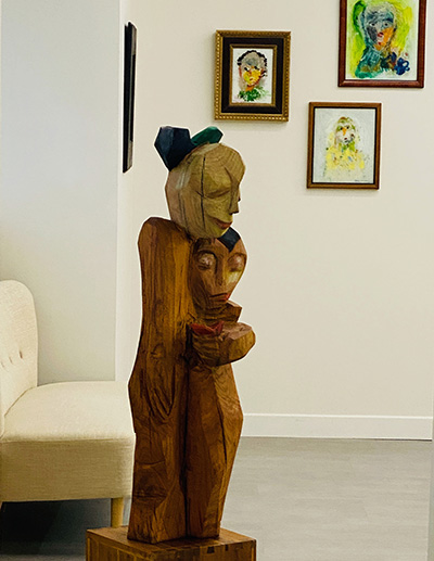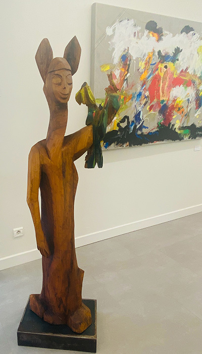 Peinture et sculpture. Tout est couleur et émotion, parfois avec retenue, souvent avec débordement de vie joyeuse dans des figures humaines et animales. Galerie de l’Est (Compiègne).