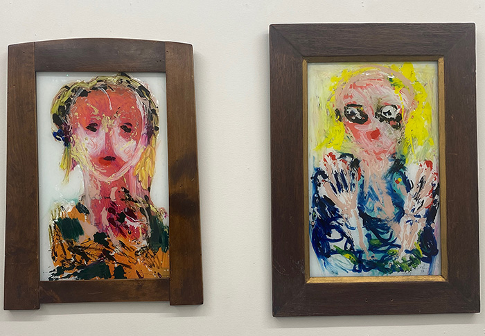 Une réelle émotion saisit celui qui découvre sa peinture sur le verre, une technique à haut risque, car l’artiste travaille à l’envers et ne voit le résultat, avec les effets de couleurs et de lumière, que lorsque la plaque est terminée et qu’on la retourne. Ces œuvres brillantes renouent avec la tradition des ex-voto en verre de l’époque baroque. Elles prennent ici un autre statut : celui d’un remerciement à la vie de la peinture, à l’art.