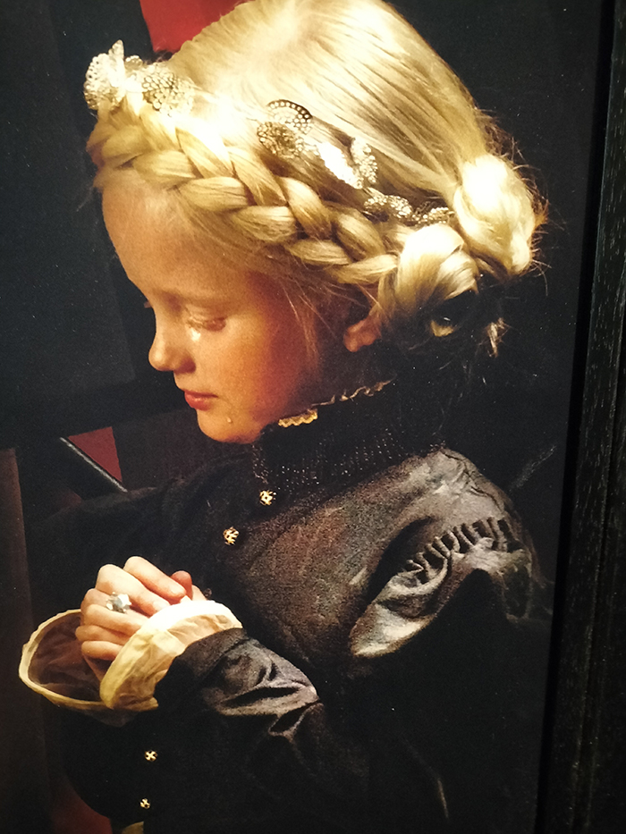 Aujourd’hui s’ouvre une nouvelle page. Il a fallu pas moins de trois ans aux restaurateurs et décorateurs pour faire revivre l’esprit de la demeure devenue depuis 100 ans, propriété de la Belgique. Soit, dans autant d’écrins, l’esprit rebelle autant que fantasque de l’illustre propriétaire en une suite de scénographies mises en musique dans lesquelles interviennent çà et là, des oeuvres d’artistes actuels comme Philippe Aguirre y Ortegui, Sophie Whettnall, Kendell Geers ou encore Cindy Wright et Erwin Olaf. Ce dernier par exemple propose plusieurs grandes photographies dont une reproduit, mais à sa manière glacée et intrigante, une scène historique peinte en 1851 par le peintre romantique belge, Louis Gallait (dont un copie faisait partie de la collection de la marquise Arconati Visconti) illustrant un moment fort de l’histoire de Bruxelles, la mise à mort par décapitation des comtes d’Egmont (qui habitait le château) et de Hornes, rebelles au pouvoir catholique de l‘occupant espagnol Philippe II.