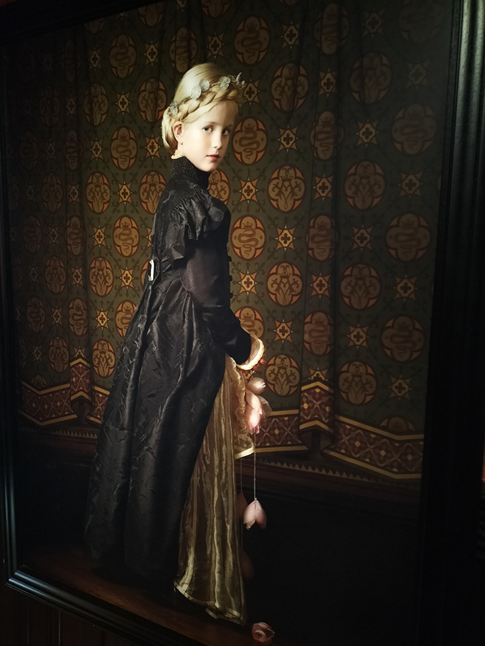 « Pour comprendre une époque, il faut parfois revêtir les tenues coutumières de ces temps anciens. C’est le prix à payer pour comprendre comment les gens bougeaient, grelottaient de froid, ressentaient du confort ou de l’inconfort. Et n‘est-ce pas merveilleux de se déguiser et de jouer le rôle de quelqu’un d’autre ? » Et l’angle se resserre, car elle s’imprègne de l’Histoire du château et rejoint ses illustres habitants dont elle sent la présence en ses murs. En réalité, elle les convoque et dispose leur effigie peinte ou sculptée en différents endroits du château. Et ses rêves peuvent s’incarner le jour où elle rencontre l’architecte décorateur Charles-Albert qui va, dans les dernières années du XIXe, transformer et grandir les espaces pour en faire une bâtisse longue et imposante.
