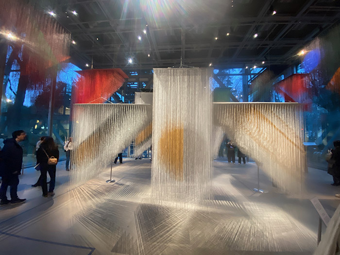 Elles sont contemporaines des Pénétrables, ces œuvres de De Soto, plasticien vénézuélien grand représentant de l’optique art. Faites de tiges colorées et assemblées verticalement, on est invité à les traverser comme dans une forêt.
