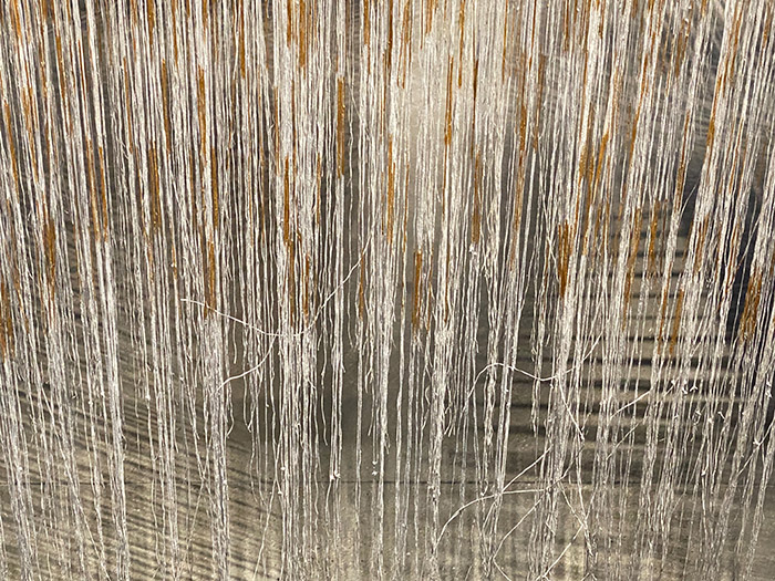 Avec une simplicité déroutante elle construit des univers d’une complexité accessibles à chacun. A la place des crins de cheval tissés entremêlés, elle utilise des fils de lin aux longueurs savamment agencées, revêtus de gesso, , un enduit à base de colle et de plâtre destiné à préparer les tableaux, et peints en acrylique.