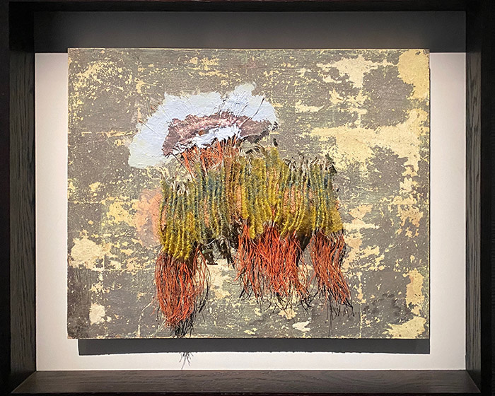 Ils expriment le besoin de l’artiste d’expérimenter sans cesse dans son atelier. Les matériaux et les formes en témoignent : laine, crin de cheval, lin et gesso, acrylique, polyéthylène et coton, papier japonais et bien sûr l’or.