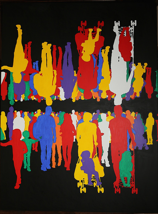 Présentée sous de grandes thématiques, l’homme des à-plats colorés a su anticiper les grandes questions de société : les flux et les réseaux, les médias, la globalisation et surtout les foules.