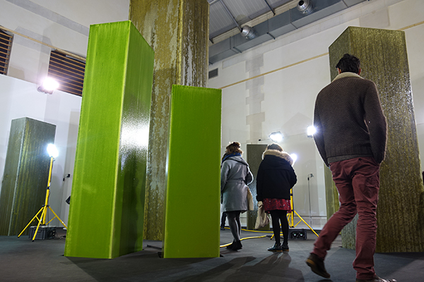 Pixel lent est un ballet performance pour 176 escargots et 2 humains qui évoluent dans une installation plastique et sonore. Chacun des escargots, « augmenté » d’un dispositif technique, devient une entité lumineuse autonome. La présence de sculptures évolutives sédimente le temps passé, présent et à venir ; la musique, tantôt diffusée, tantôt jouée en live, module la perception du spectateur qui déambule dans l’installation. La vidéo projection propose un voyage entre l’infiniment grand et l’infiniment petit. Pixel lent est une expérience sensorielle immersive, un tableau mouvant qui projette chacun dans un rapport intime à la temporalité et au mouvement, et l’invite à la contemplation. Il est fort probable que cette performance audiovisuelle, qui convoque le hasard et la bonne volonté des escargots, reste une des images iconiques de la Biennale !