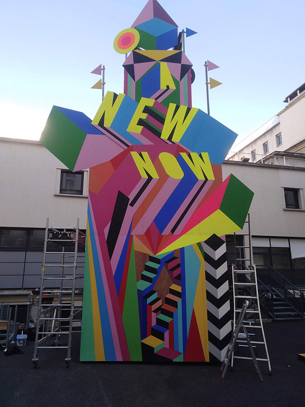 L’installation de « A New Now » >>>, l’œuvre de Morag Meyerscough, sur le Socle (Paris 04) a eu une suite étonnante : son transfert, non prévu initialement, au milieu de l’hôpital Foch de Suresnes.