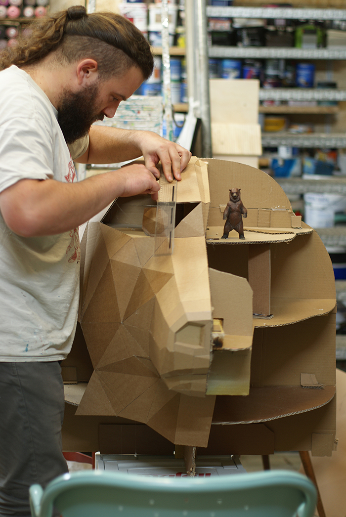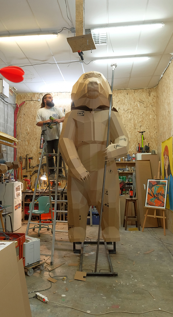 Dans les installations de ces pirates picturaux, les bêtes et les cités sont en carton, issu d’un processus de récupération et de ré-emploi. Ils militent pour un ré-ensauvagement et une reconnexion au vivant.