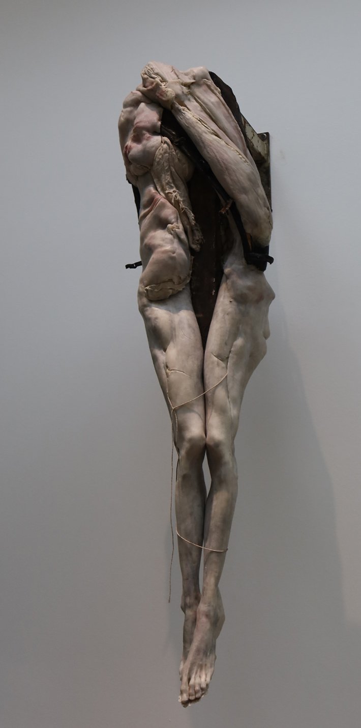 A partir des années 2000, l’œuvre va se complexifier. Les choix se précisent. L’importance de la peau par exemple et sa teinte obtenue par un travail dans l’épaisseur de la cire qui l’irrigue de sang et de froidure bleutée. Et puis le choix de valoriser les corps acéphales afin d‘échapper à la temporalité, aux lieux, à l’anecdote. Exprimer à travers la pose et la sensualité de texture et de couleurs, la dimension mentale de l’humain, ses conflits, ses appels entre élan vital et désir de mort. Cette quête de l’universalité et dont on trouve les échos à la fois dans la bible comme dans l’Odyssée ou les textes indiens va aussi passer par un face à face avec l’animal :