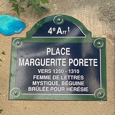 En effet, le 10 juin 2025, La Ville de Paris a décidé de donner à cette place celui d’une femme du XIIIe, une béguine totalement libre qui a écrit un livre "Le miroir des âmes simples et anéanties" Ce texte mystique a connu le succès mais a déchaîné la colère de l’inquisition. Elle fut brûlée vive à Paris en 1310.