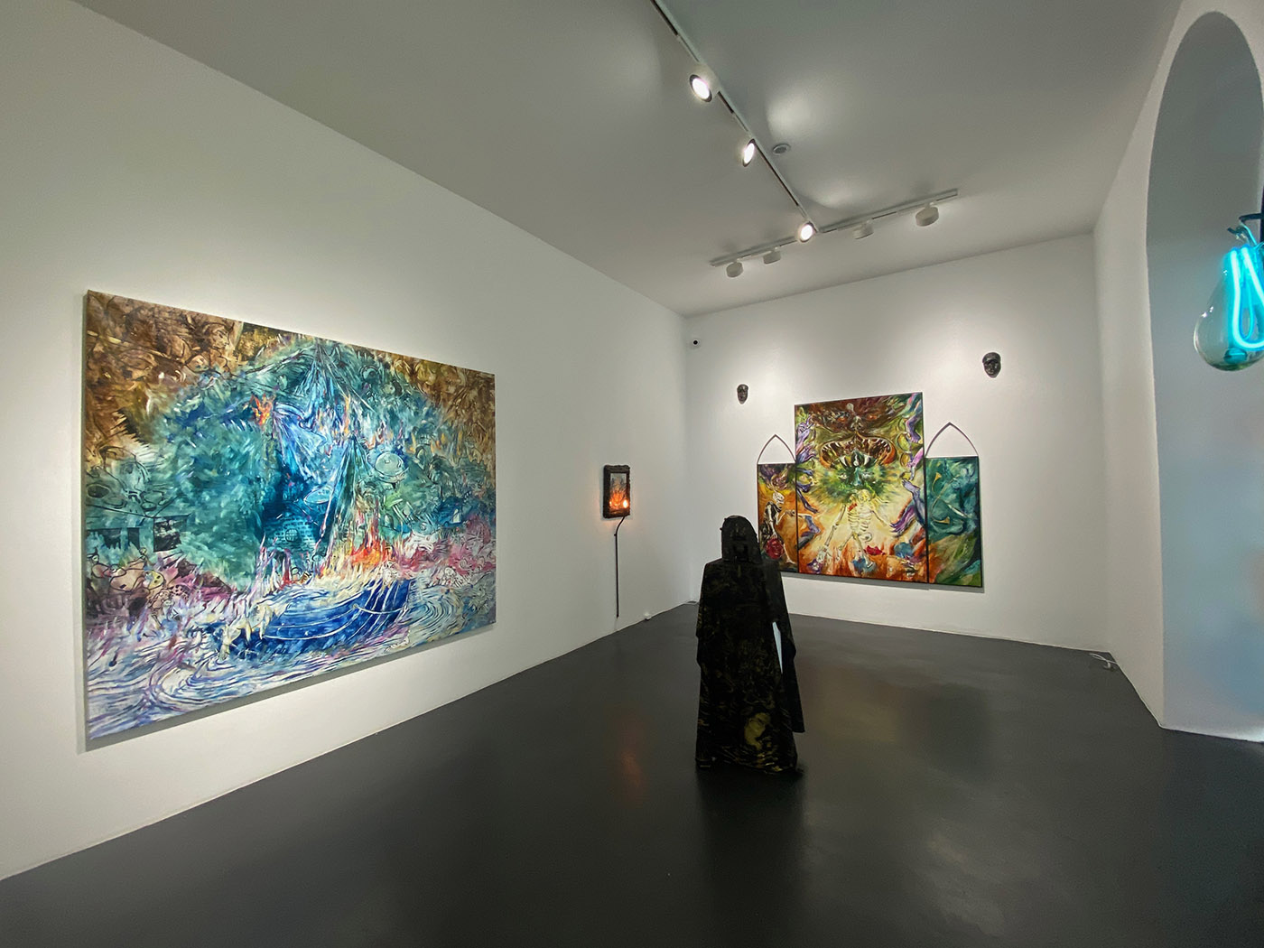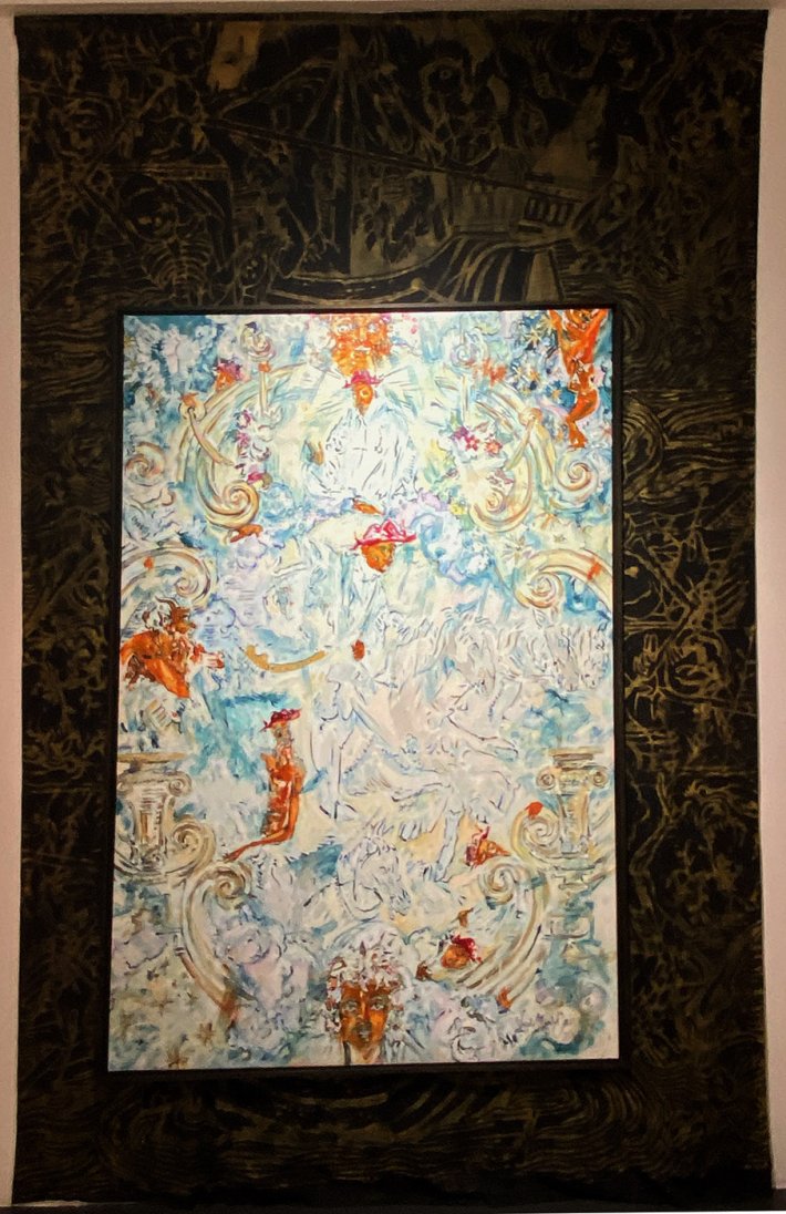 Cette exposition est un entrelacs de références culturelles et de son histoire personnelle. Avec les références à Dürer, William Blake, surtout Gustave Moreau et ses illuminations, il interprète, comme plasticien et musicien, des œuvres de la Renaissance au XIXe. Les décors de ses performances musicales sont laissés intacts et deviennent des œuvres ; un bronze a même le titre de shrine c’est-à-dire de châsse.