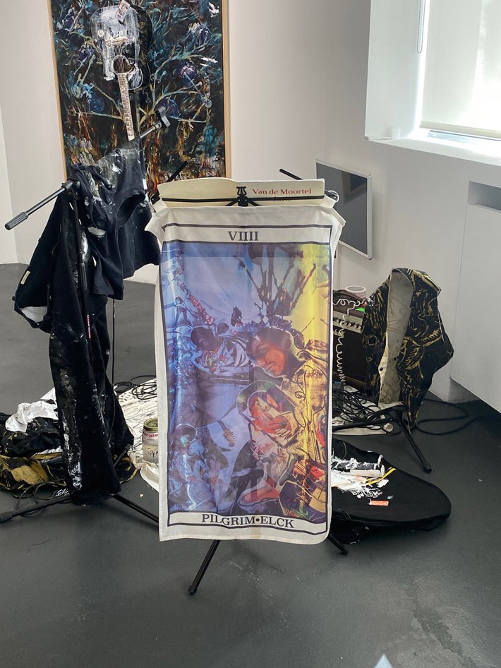 Joris van de Moortel, né à Gand en 1983, où il vit et travaille toujours, développe une œuvre d’une grande vitalité où la musique joue un rôle fondamental. Dans sa performance de 2020, il avait cassé sa guitare, image de son âme, et l’avait fait revivre, bricolée, pouvant émettre des sons : son interprétation de la résurrection.