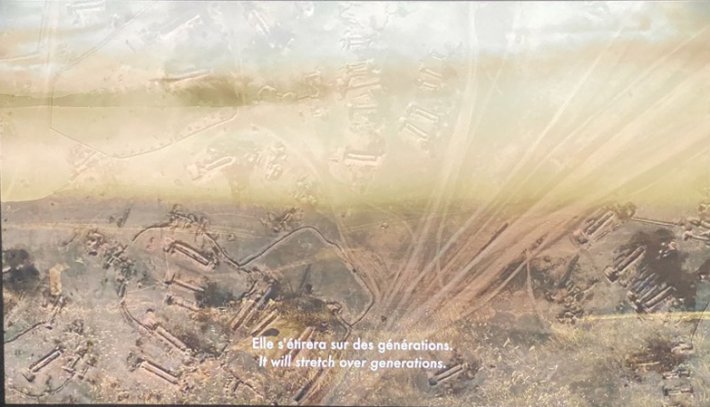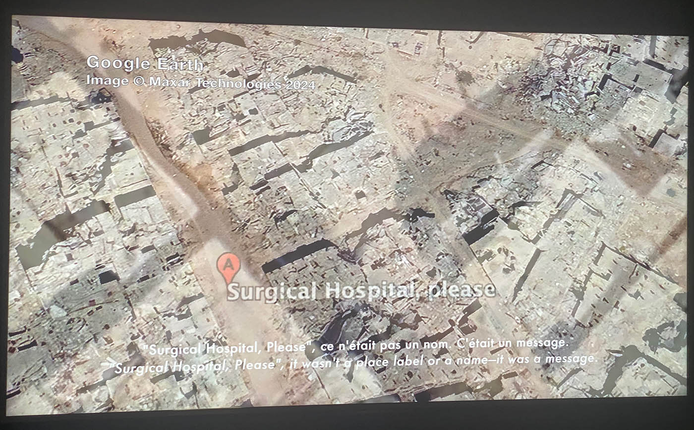 C’est bien sûr une critique des GAFAM qui font disparaitre ces sources d’images par les algorithmes ou par des individus lointains payés à être censeurs ! De surcroît, ces images par satellite qu’elle choisit et assemble ne sont pas dénuées de qualités photographiques formelles, même si l’abstraction rime avec dévastation et destruction[1].( ] Otto Dix, Georges Grosz, Georges Braque avaient peint des tableaux de tranchées de 14-18, qui avaient une force de dénonciation des horreurs de la guerre. Images indociles d’un autre temps, avec d’autres médias.)
