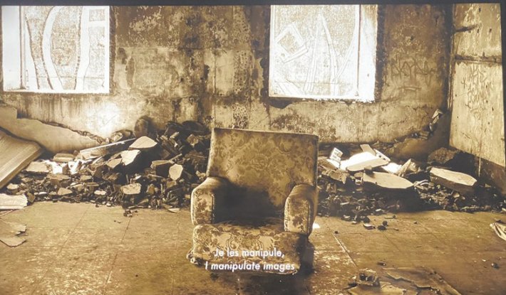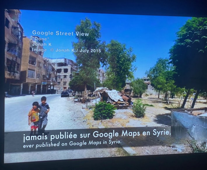 « En juin 2018, l’artiste luxembourgeoise Carine Krecké tombe par hasard sur une série de photos sur Google Maps montrant la destruction d’Arbin, une ville de la banlieue nord-est de Damas. Ces images déclenchent chez l’artiste une obsession qui, pendant six ans, la pousse dans une quête effrénée à l’information. Plongeant au cœur des réseaux officiels, des forums et des plateformes d’échange de tous horizons, elle explore les récits de destins tragiques, collectifs et individuels. Face à la masse d’informations à vérifier, Carine Krecké mène son enquête sans relâche, recoupant les témoignages depuis son écran d’ordinateur. Elle n’hésite pas à s’exposer au danger en s’immergeant et en s’immisçant dans des discussions, en infiltrant des réseaux et en s’appropriant des outils d’investigation et d’analyse. Hyperinformée sans jamais perdre son sens critique, l’artiste oscille entre lucidité et vertige, hypnotisée par les images et les récits, prisonnière d’un brouillard de guerre où réalité et hallucination se confondent. » (Cartel)