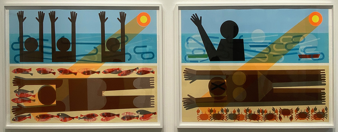 À l’arrière-plan, des forêts brûlent ; des plateformes pétrolières sont visibles depuis la plage ; les vacanciers qui se font dorer au soleil flottent à côté de poissons morts. Les baigneurs lèvent les bras comme les migrants qui se noient. Le monde continue de tourner, mais quelque chose ne va pas, c’est certain. Et personne ne s’en émeut. Jusqu’où vont l’inconscience ou l’irrationnel ?